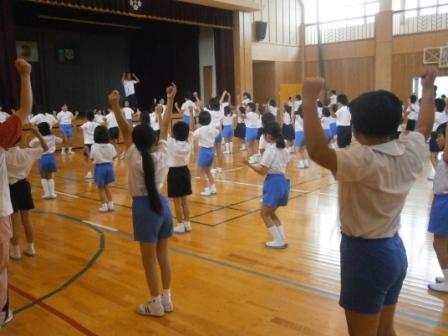 第一はできるけど第二は覚えているかちょっと不安・・・という子も細かい動きを教えてもらって、全校で元気よく体操できていました。
