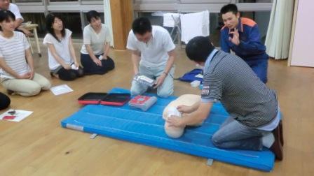 6月26日(水)19:30から,本校ランチルームにおいて,羽咋消防署の方々を講師にお招きし,心肺蘇生法講習会が行われました。