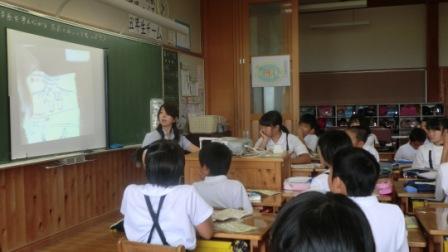 はくい獅子舞保存活性化実行委員会のメンバーである歴史民俗資料館の中野さん、ICT支援員の若狭さんを招き、今まで調べたことや祭りの活性化に向けての提案について聞いていただきました。それぞれ自分たちの町の祭りや獅子舞の歴史や実態を聞き取りやアンケート等で調査し、考えをまとめ、「青春団を作る」「チラシを作成」「ショーをする」「体験会をする」などいろいろな提案がなされました。祭りに詳しいゲストティ-チャー2名も感心され、「どの町も本当によく考えた驚きの発表や提案でした。こんなにすごく、よく考えた内容に本当に驚きました。ぜひ、これからも祭りを大切に地域を大切にしていってほしいです。」とお褒めの言葉をいただきました。