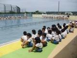 初めに、みんなが楽しく安全に泳げるよう、校長先生と一緒に全校で安全祈願です。