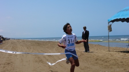 そんなすばらしい砂浜を,4~6年生の瑞穂っ子が「絆」のタスキをつないで駆け抜けました。