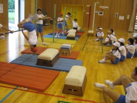 できるようになりたいという意欲があると,集まり方も素早くなります。また,観たい視点が個々に違うので,観る場所がそれぞれ違うのです。細かいことですが,こうしたことを教師だけではなく,子ども達が知ることも,集団づくりや技能の向上には重要な要素と考えます。