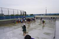 毎年5,6年生の貢献活動として取り組んでいるプール掃除。