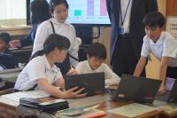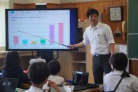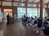 学校の取組を羽咋市教育委員会の方々に説明し,