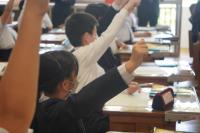 素敵な挙手でみんなに伝えたいとやる気を見せる姿。