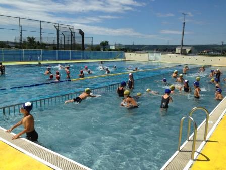 約50名の児童が,毎日500メートル以上を泳いでいます。