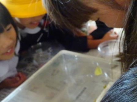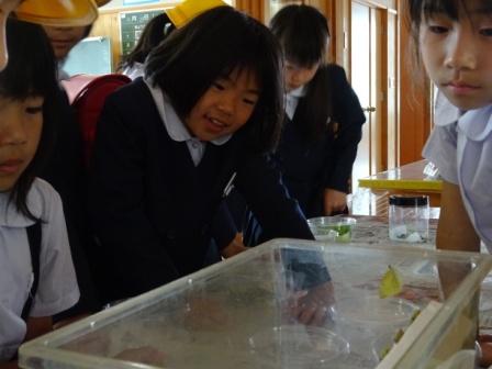 3年生は,5月初旬から,プランターのキャベツに産み付けられた