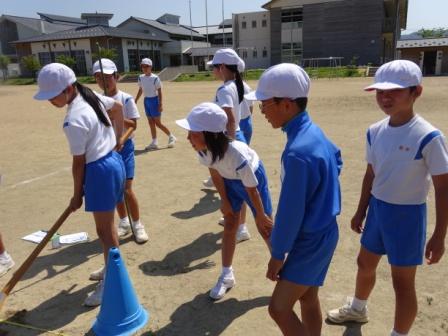 5年生は,班の仲間が1cmでも伸びるよう,進んでアドバイスしようとします。