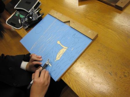 生き物の雰囲気が出るように,彫り方を工夫している子がたくさんいますよ。