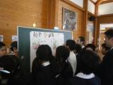 はくい獅子舞保存活性化実行委員会のメンバーである歴史民俗資料館の中野さん、ICT支援員の若狭さんを招き、今まで調べたことや祭りの活性化に向けての提案について聞いていただきました。それぞれ自分たちの町の祭りや獅子舞の歴史や実態を聞き取りやアンケート等で調査し、考えをまとめ、「青春団を作る」「チラシを作成」「ショーをする」「体験会をする」などいろいろな提案がなされました。祭りに詳しいゲストティ-チャー2名も感心され、「どの町も本当によく考えた驚きの発表や提案でした。こんなにすごく、よく考えた内容に本当に驚きました。ぜひ、これからも祭りを大切に地域を大切にしていってほしいです。」とお褒めの言葉をいただきました。