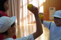 次に、ボールを投げたり受けたりする練習をしました。