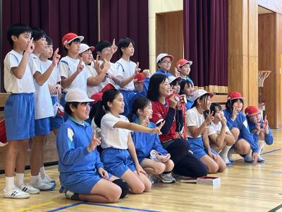 3~6年生が体育館に集まり、最初にパート紹介です。
