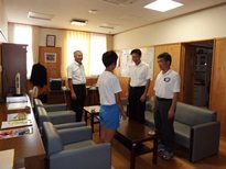 来週8月24日・25日の日程で,神奈川のニッサンスタジアムで行われる大会に,以前にお知らせしたように,5年100Mで,県代表となった本校児童が出場します。学校の前に看板があるのでみなさんご存じだと思いますが,コーチの発案で,看板前で記念写真を撮影し,全校で応援のための寄せ書きの旗を作成しました。新聞報道でも見られた方もおいでるかも知れませんが,8月3日市役所では「オリンピックの松本選手のようにベストを尽くします」という決意を堂々と発表することができました。その際,他の中学生とともに,市長様から直接激励の言葉をいただきました。また,市の陸上連盟からも写真のように激励をいただきました。競技は25日の9:30~開始です。あと一週間,暑い中練習は続きます。みなさん応援してください。