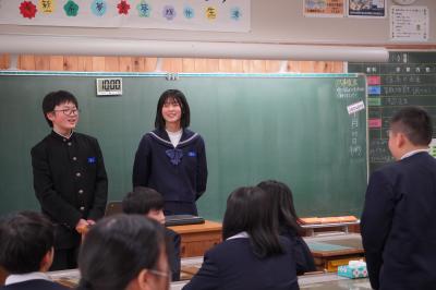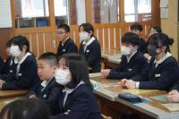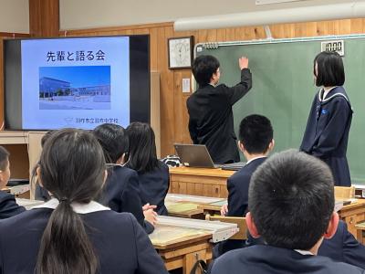 1月28日、本校を卒業した中学生2名が来校し、6年教室で「先輩と語る会」が行われました。
