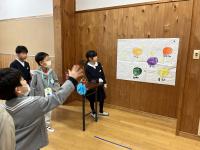 はくい獅子舞保存活性化実行委員会のメンバーである歴史民俗資料館の中野さん、ICT支援員の若狭さんを招き、今まで調べたことや祭りの活性化に向けての提案について聞いていただきました。それぞれ自分たちの町の祭りや獅子舞の歴史や実態を聞き取りやアンケート等で調査し、考えをまとめ、「青春団を作る」「チラシを作成」「ショーをする」「体験会をする」などいろいろな提案がなされました。祭りに詳しいゲストティ-チャー2名も感心され、「どの町も本当によく考えた驚きの発表や提案でした。こんなにすごく、よく考えた内容に本当に驚きました。ぜひ、これからも祭りを大切に地域を大切にしていってほしいです。」とお褒めの言葉をいただきました。
