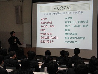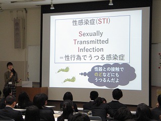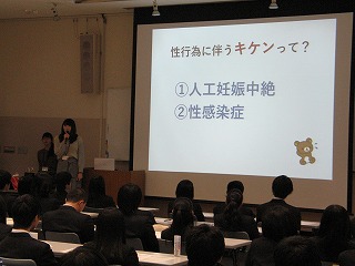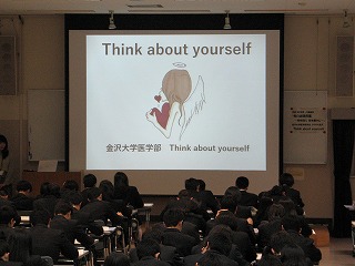 講師は、金沢大学 医学部学生(SCORA金沢 Think about yourself)3名です。本校の生徒も真剣に聞いていました。