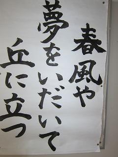 生徒玄関の様子(健康観察用紙を提出しよう) 書道部の作品(夢を背負って松陵の丘へ)