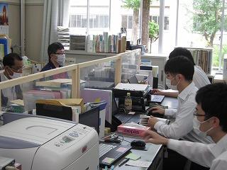 本校の工業の先生の尽力で、お手製の飛沫感染防止パネルを