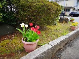 玄関前のチューリップが咲き出した。この花を見ると、どうしてもこの歌を口ずさんでしまう。