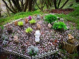 こびとたちの庭も桜の花びらでいっぱいだ。しかもいつの頃からか白雪姫もいる。これには驚いた。