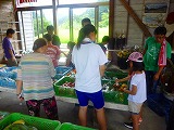 朝市には、今日も色々な野菜が並んでいました。野菜だけでなく加工品もあり赤飯、みたま、梅ジャム、こんかにしん(ニシンの糠漬け)などもあります!今日も朝から大盛況でした。生徒も2回目で少し慣れてきたのか何をするべきか考えて活動してしたように思います。