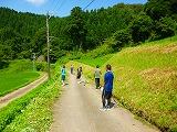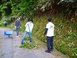 かなり道路脇に草が生えていましたが、生徒たちの頑張りもあって、とてもキレイになりました!この高齢化が進む東原町で、自分たちがお手伝いに来る前までは、毎年この広い場所を草刈りや田・畑の整備をしていると思うと大変苦労していたことがうかがえると同時に高齢化地域の現状についても考えされられました・・・。