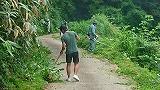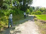 側溝に落ちた草集め 長い距離あります・・・ 再び校長先生も来てくれました!