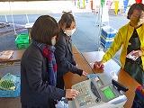 今回は、朝市のお手伝いとして、3年の泉さんと大木さんが参加しました。しっかりとコロナウイルス感染症拡大防止対策をしての営業です!生徒は、お客様の荷物運び、レジ打ち、袋詰め、カゴの消毒など生徒がお客様のためになることを考えて行っていました。
