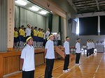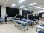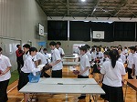 部活の前に校歌練習をはじめました。卓球部、サッカー部、バトミントン部の