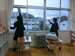 来週の美化週間前に文化環境委員の1、2年生の皆さんが窓ふきを行ないました。