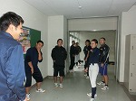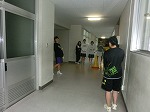 雨の日は各部練習場所が限られるので廊下もトレーニング場所になります。