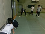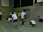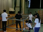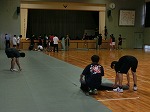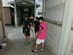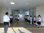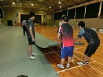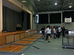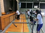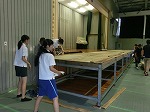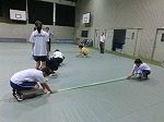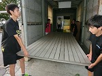 とても蒸し暑い体育館でシート敷き・固定、渡廊下の掃除をしてくれました。