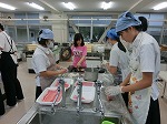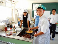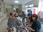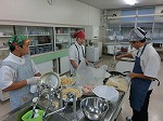 今朝も調理室の朝は早い。ご飯を炊いておにぎりにしてお肉を巻いて焼いて。