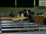 バスケ部の皆さん、食堂設営のために重い木のベンチを運んでくれて感謝!