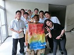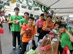 北陵祭の用意をしています。Tシャツの色と三角旗の色がリンクしてます。