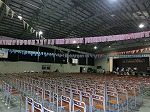 前期の壮行式が行われました。野球部、硬式テニス部、男女バスケット部