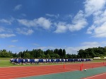 晴れました!校長先生の挨拶に続き、生徒会長の挨拶、体育委員の準備運動後、