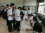生徒は真剣に見ていました。福祉の生徒は授業で手話を