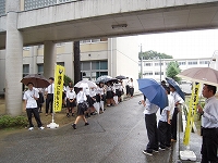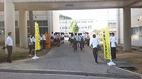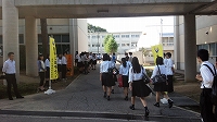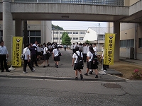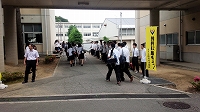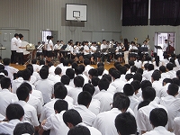 コンクールを控えている吹奏楽部に向け、応援団リードのもと、全校生徒で応援歌を歌いました。