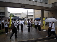 あいにくの雨ですが、元気よく挨拶を交わす生徒達の姿はとてもすがすがしいです。