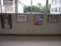 美術部、写真部、書道部が生徒玄関前のスペースを有効利用して、部活動で作成した作品を展示してくれました。