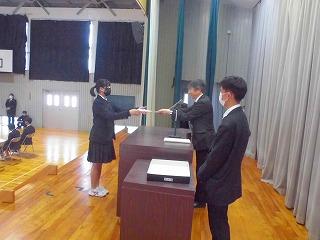 彼らにとっては、高校へ入って初めて全校生徒の前で任命状を受け取るということもあって、