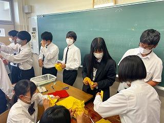 今回は2年生に北陵祭飾りの花を作ってもらいました。