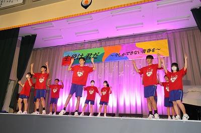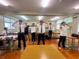 振付、校歌、応援歌の練習をしています。