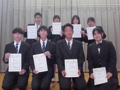 表彰式では、陸上競技部、レスリング部、少林寺拳法(個人)、写真部、書道部の生徒たちが、その栄誉を称えられ、校長先生より表彰されました。