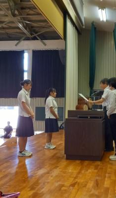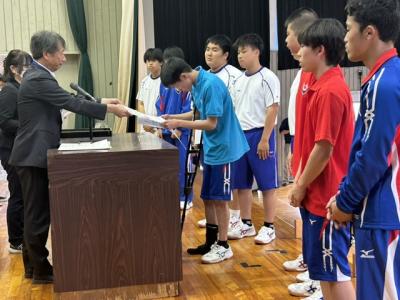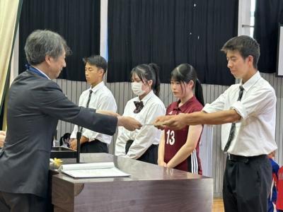9月6日(金)7限に表彰伝達式および壮行式(前期新人大会・北信越地区県大会・選手権大会県大会)