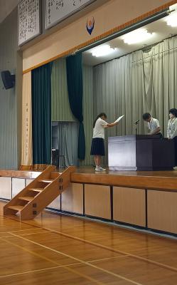 一人ひとり名前を呼ばれ、壇上に上がり、校長先生から任命状を受け取りました。