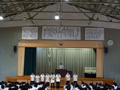 6月10日(月)7限目に総体・総文表彰伝達式&北信越壮行式が行われました。