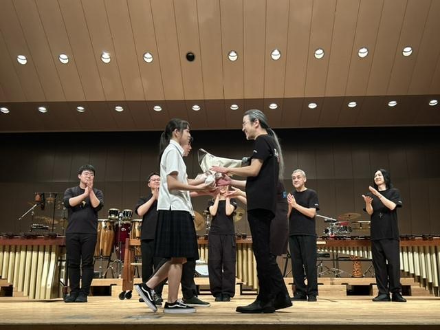 「音楽は楽器がなくても身体で音を出せる。それも音楽だ」というコンセプトのもと、3グループに分かれて音を奏であうパフォーマンスなどが展開され、その独創的なリズムと熱のこもった演奏に生徒たちは魅了されていました。