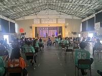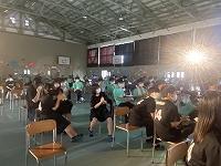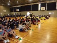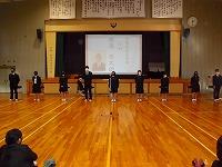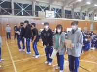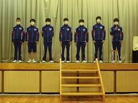壮行式は2年生は第一体育館で、1、3年生はリモートをつないで行いました。